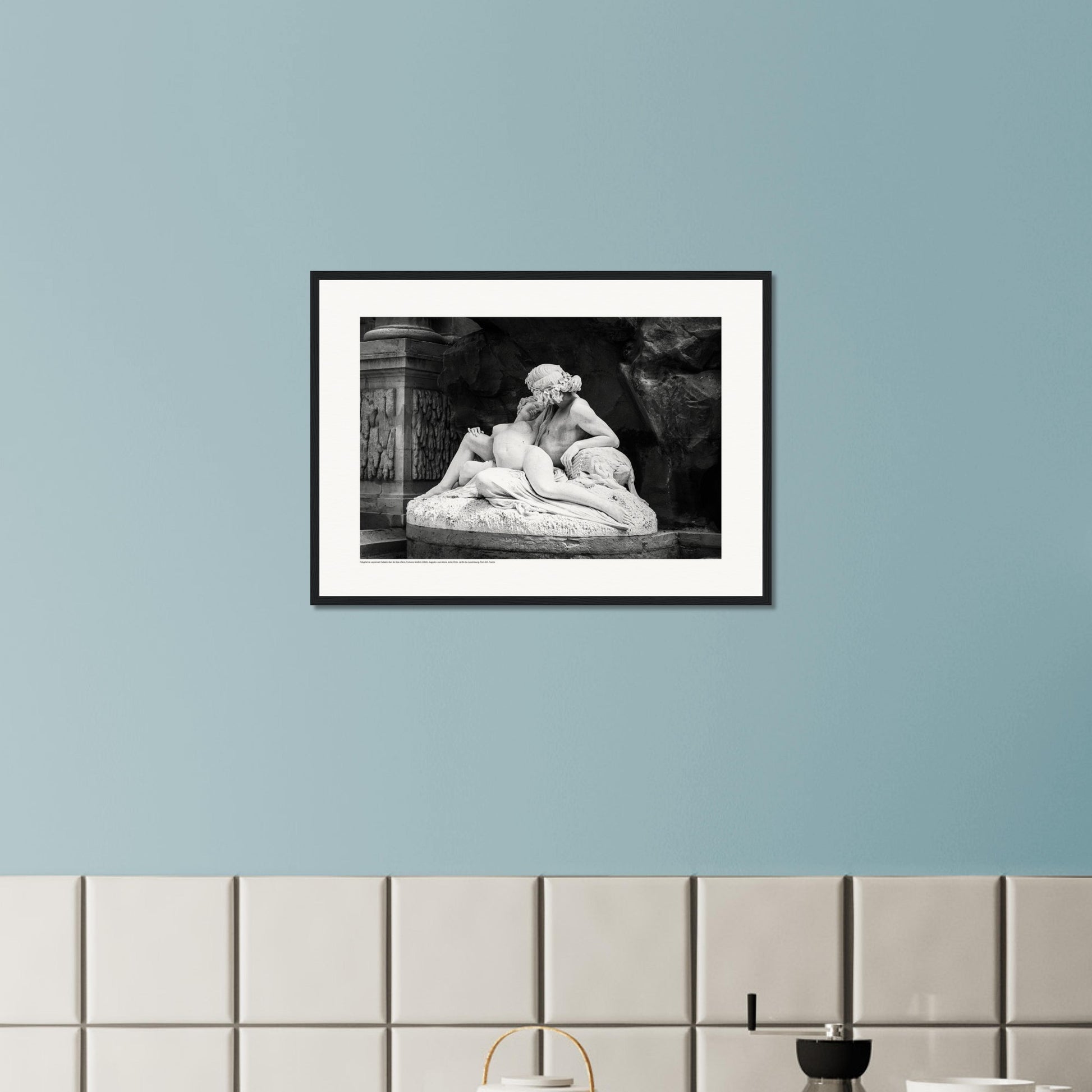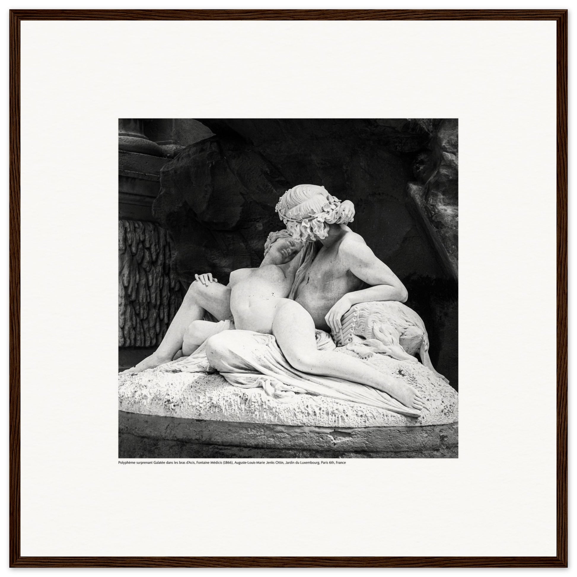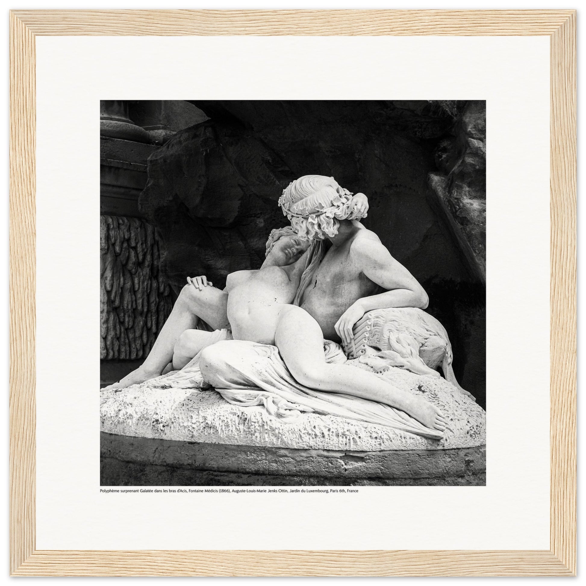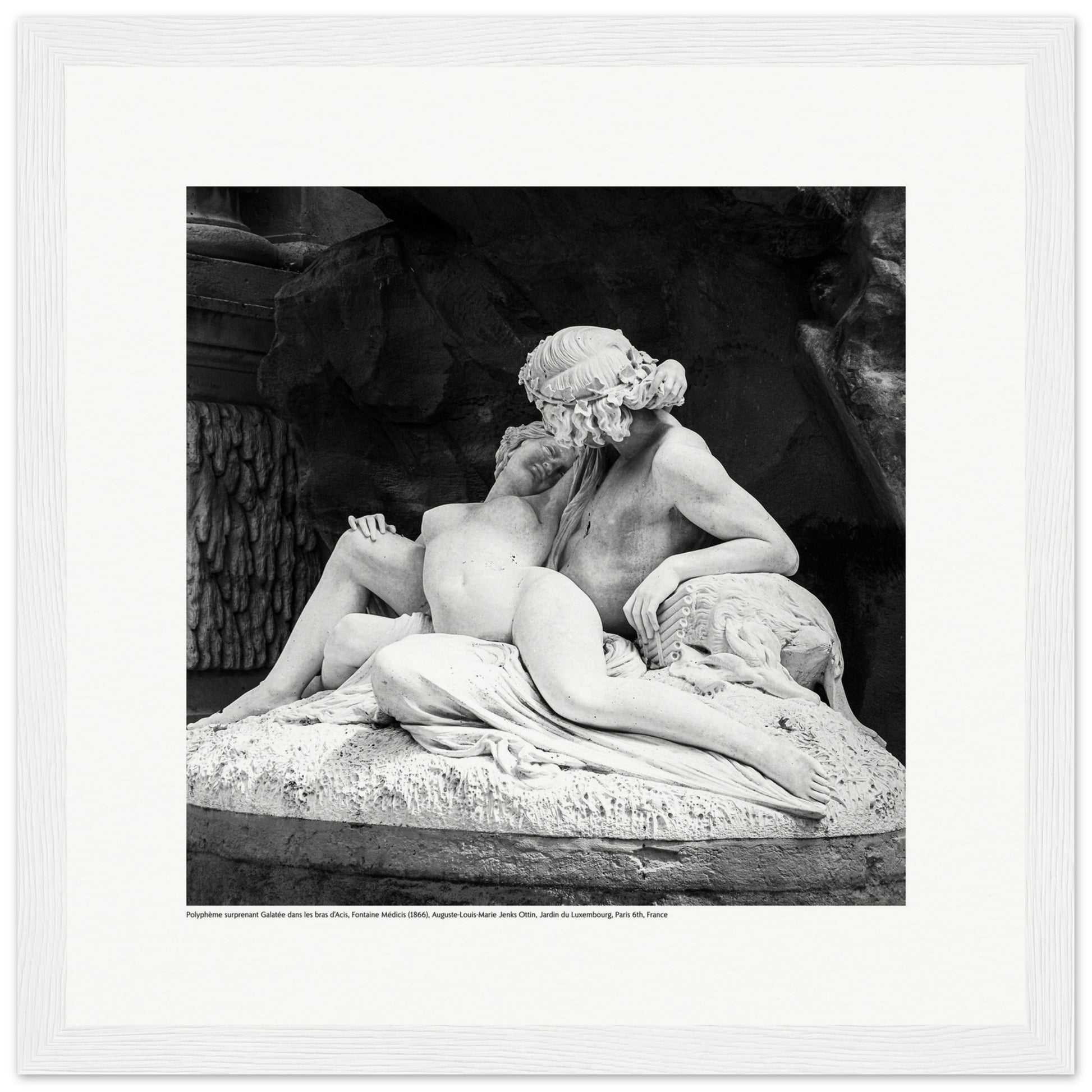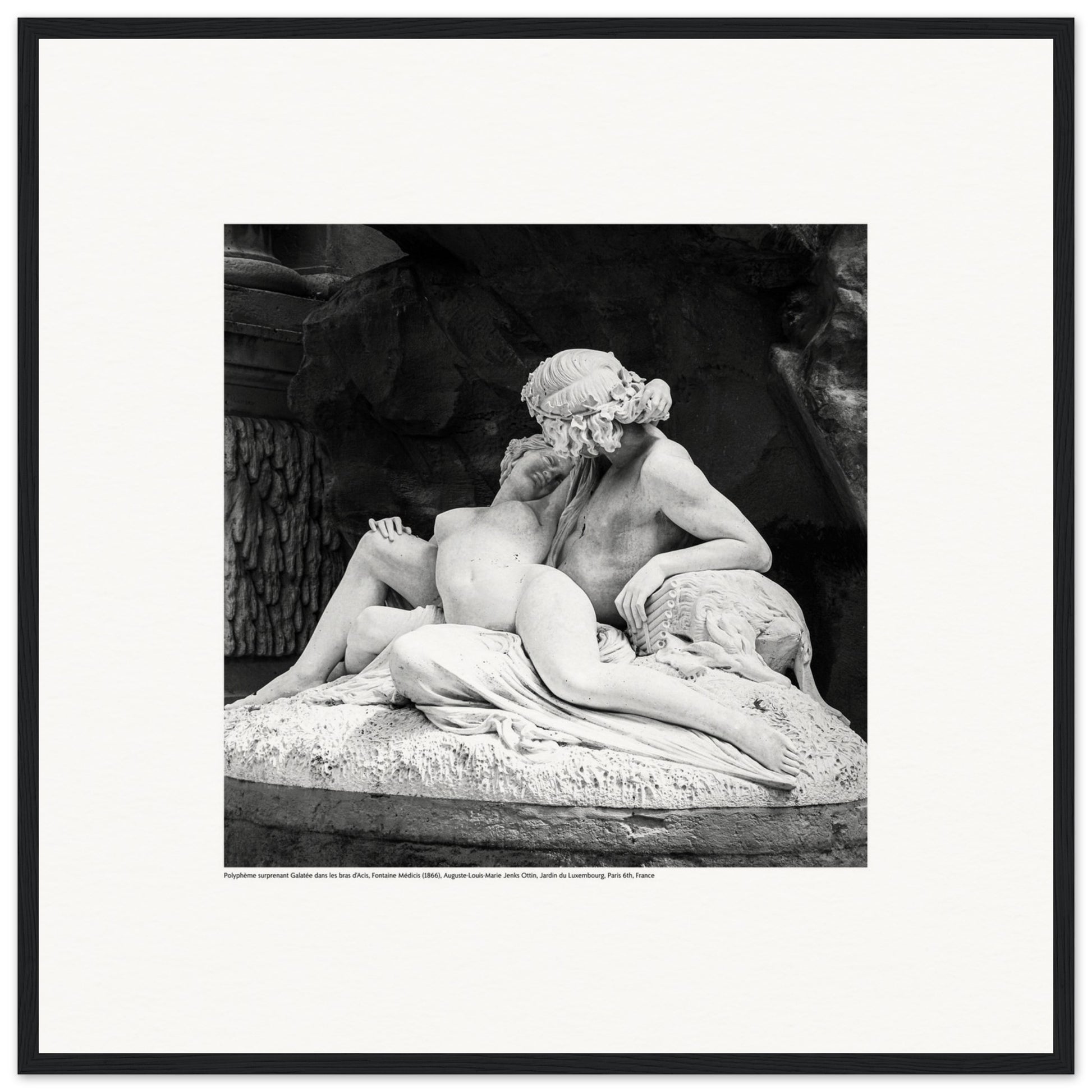"Polyphème surprenant Galatée dans les bras d'Acis" is also known as the Fontaine Medicis. It was originally designed back in the 1600s when Marie de Medici, who was the Queen regent for her son King Louis XIII after her husband died, decided to have a palace built and gardens laid out in a style reminiscent of her days in Italy. The Cyclops Polyphemus is in love with Galatea, a nereid, nymph of thesea. She prefers the Sicilians Acis. Polyphemus surprises them to get her and kills his rival by crushing him under a rock. Galatea then changes the blood of Acis into a river bearing his name in Sicily.