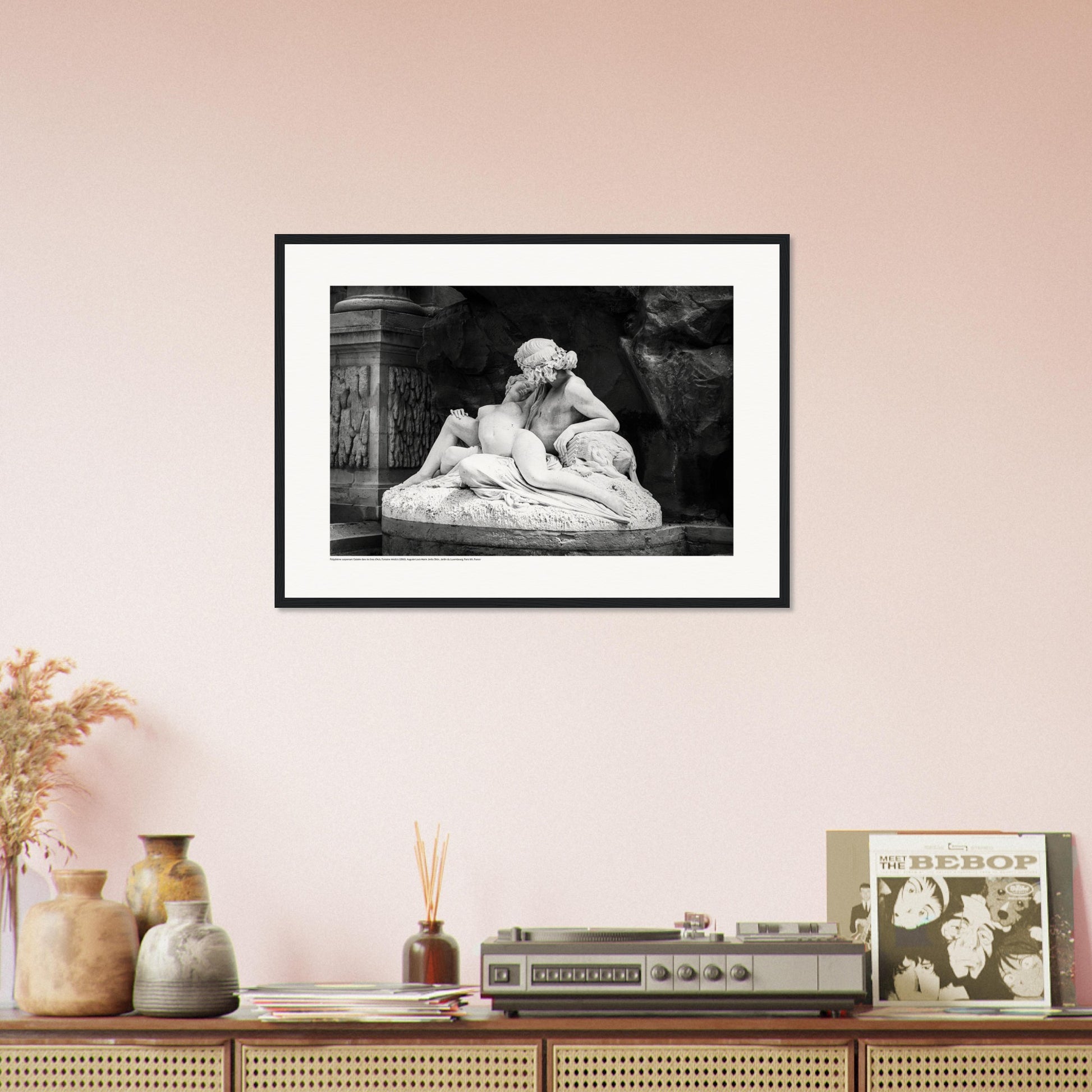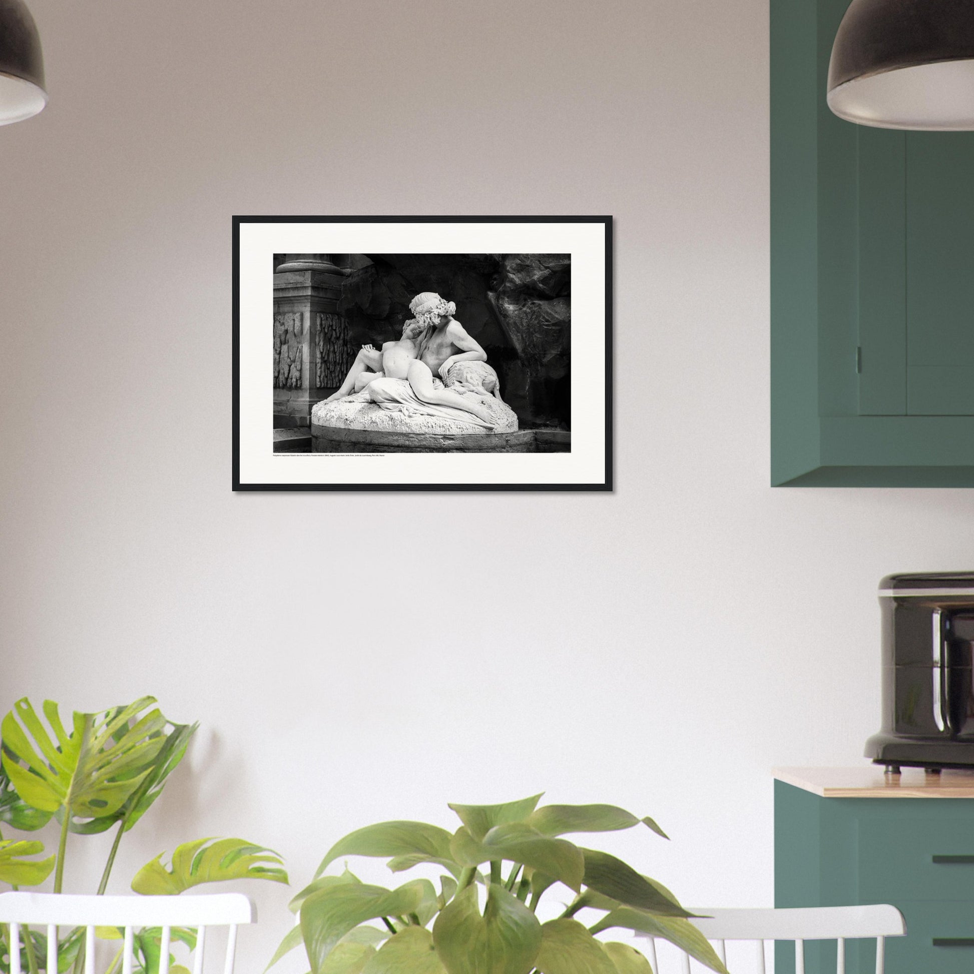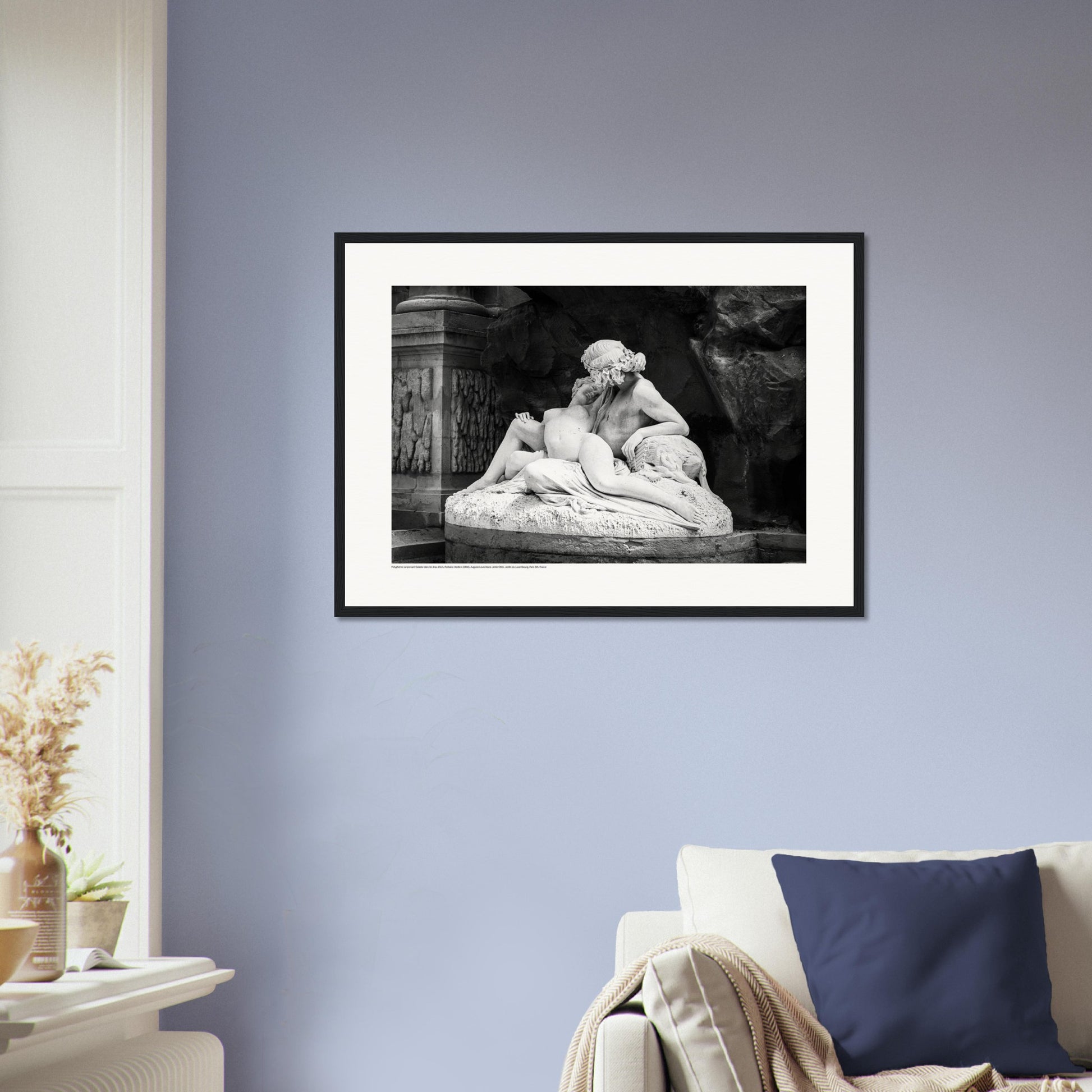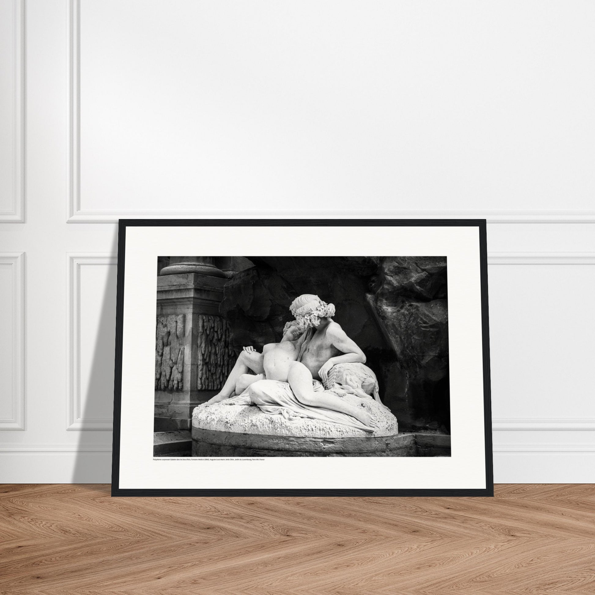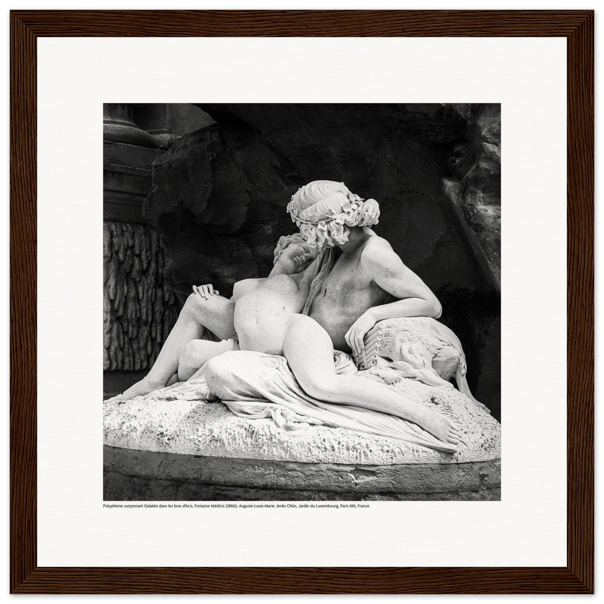 "Polyphème surprenant Galatée dans les bras d'Acis" is also known as the Fontaine Medicis. It was originally designed back in the 1600s when Marie de Medici, who was the Queen regent for her son King Louis XIII after her husband died, decided to have a palace built and gardens laid out in a style reminiscent of her days in Italy. The Cyclops Polyphemus is in love with Galatea, a nereid, nymph of thesea. She prefers the Sicilians Acis. Polyphemus surprises them to get her and kills his rival by crushing him under a rock. Galatea then changes the blood of Acis into a river bearing his name in Sicily.